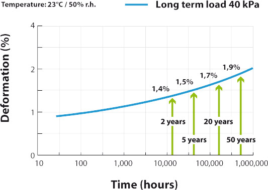 Even at low densities, polyurethane keeps excellent mechanical properties such as compressive stress, compressive strength and creep. These properties are essential in load bearing applications, such as floorings and other areas that can be subject to regular foot traffic such as flat roofs.