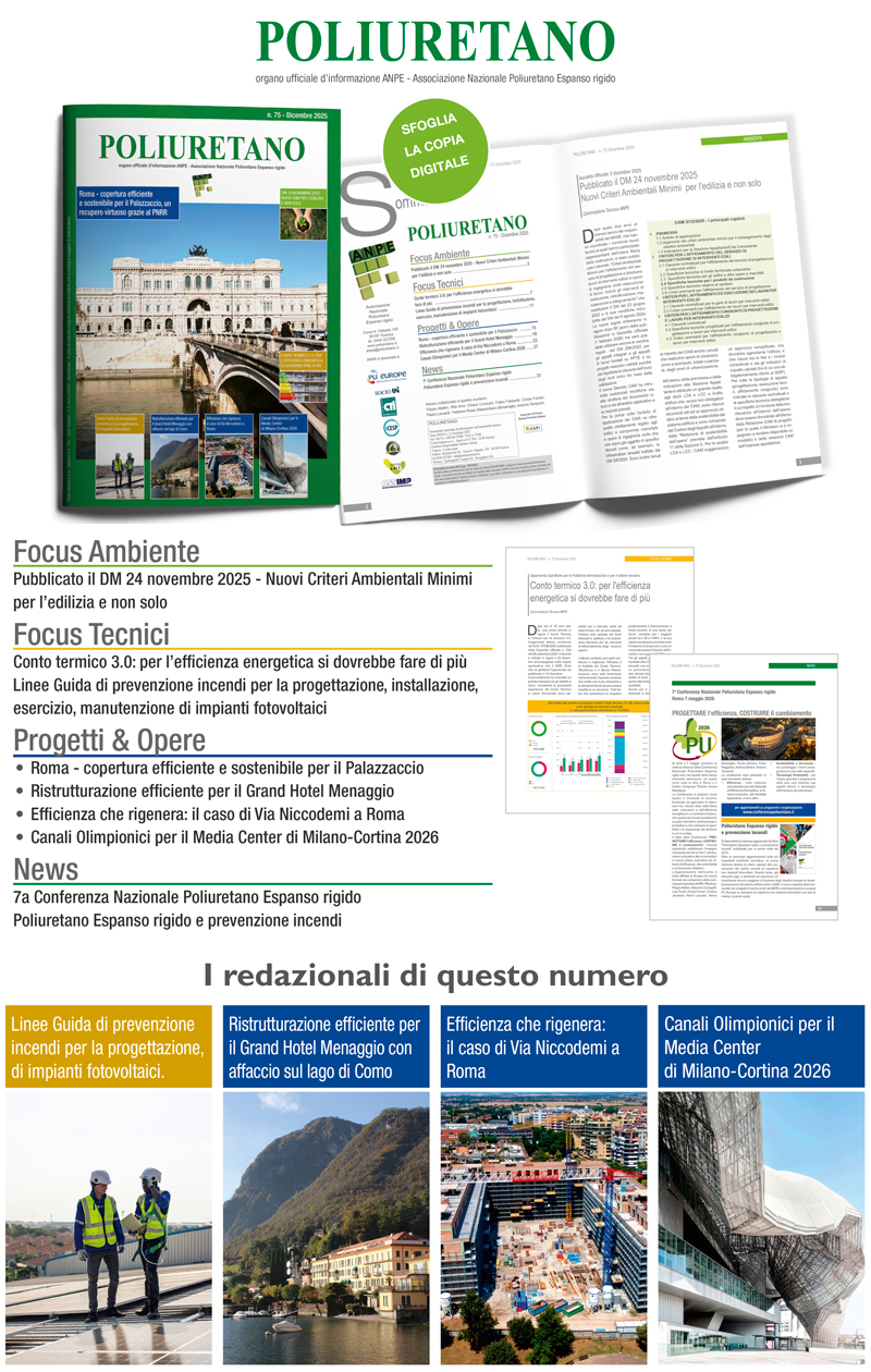 Il numero si apre dando ampio spazio alla nuova versione 2.0 delle Linee Guida per la corretta applicazione in opera di poliuretano espanso rigido redatte dal Gruppo di Lavoro Applicazioni in opera costituitosi all'interno dell'Associazione.